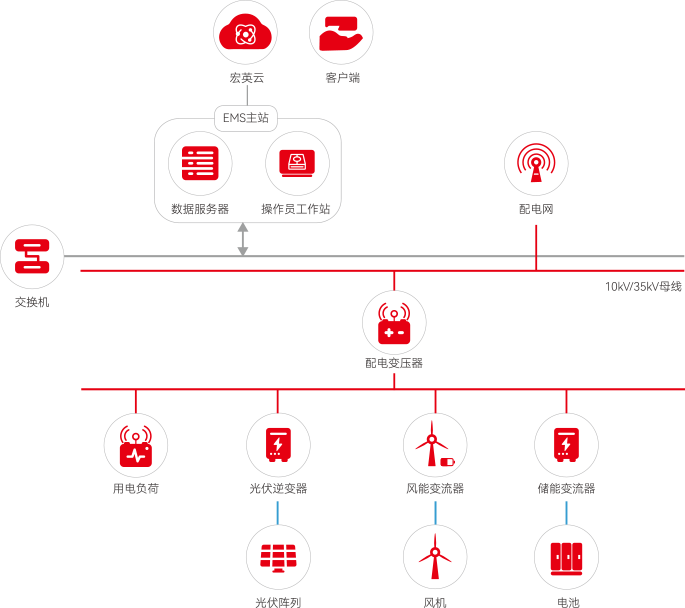 米兰·(milan)中国风光储一体化解决方案是融合物联网技术,将风能、太阳能、储能以及EMS能源管理系统结合起来,实现风、光、储多能互补协同运行,能源精准调配减少弃风弃光,提高能源综合效率,同时通过调峰、调频和调相等功能,有效抑制电网波动,提升电网稳定性、可靠性。